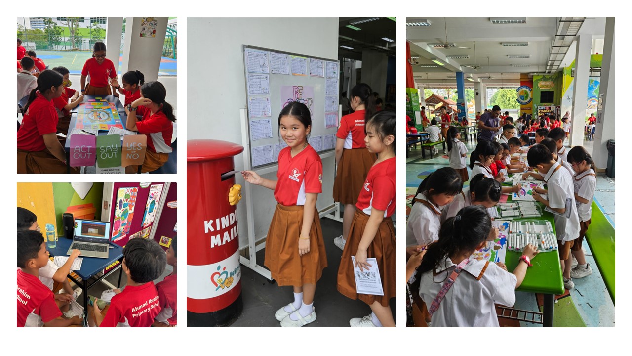 In addition to the classroom activities, various recess fringe activities were also prepared for the students. There were games booths, a colouring station, display board showing P5’s students’ handmade posters on their interpretations of cyberkindness. Students participated in the various activities actively. It has indeed been a meaningful day of learning for one and all!