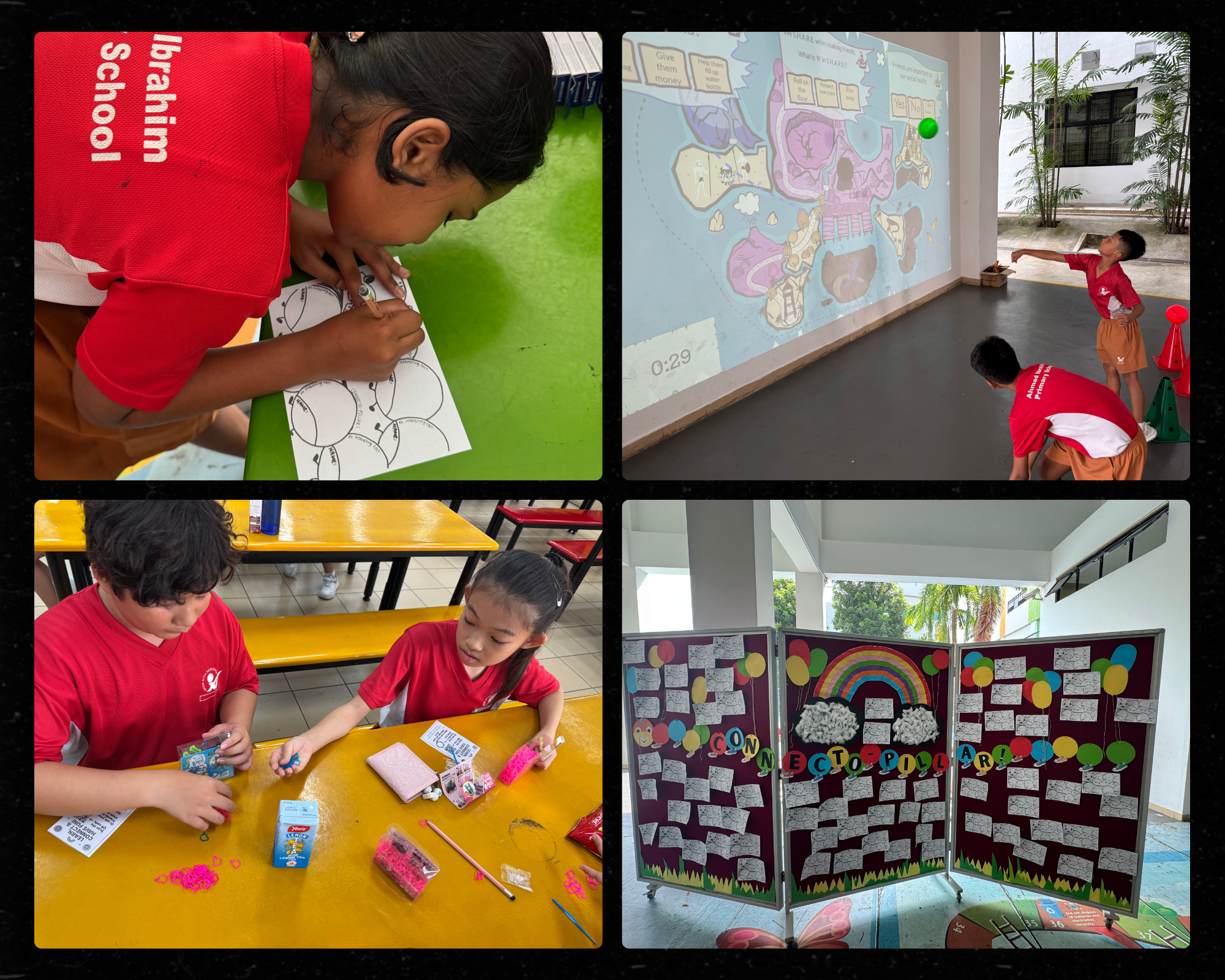 Students celebrated the joy of connecting with others through fun and interactive activities such as gathering interests about their friends, playing paper ball with peers, exchanging and making loom bands, and contributing to the interactive wall.